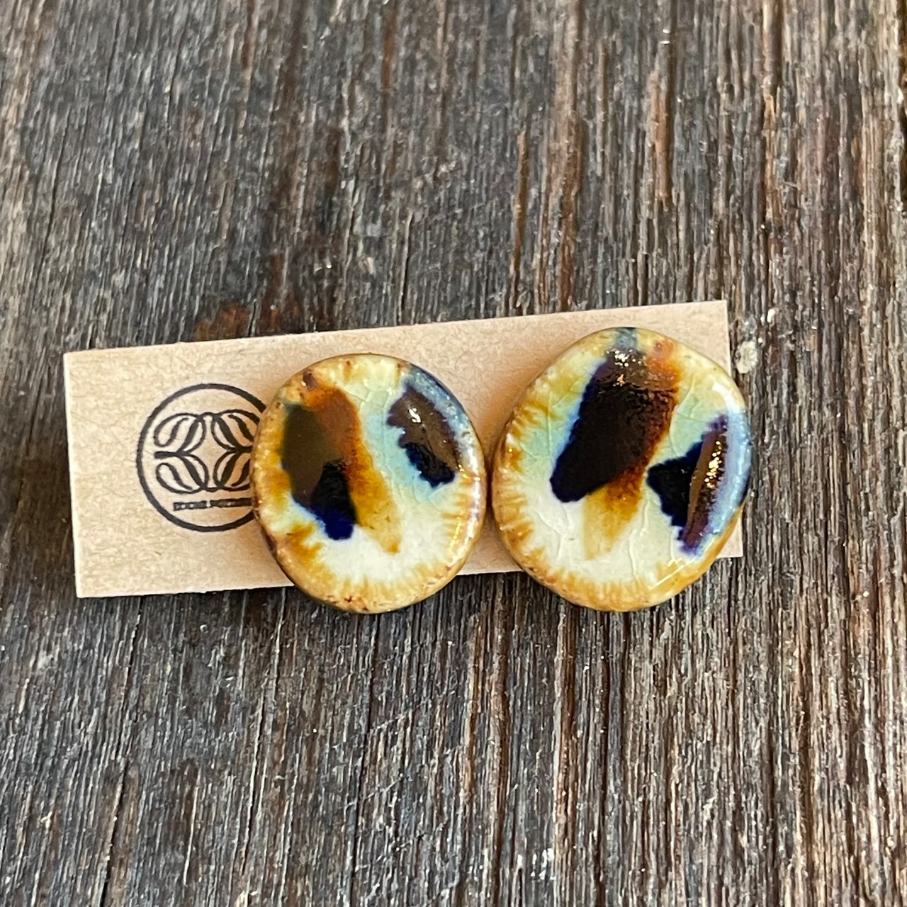 一つずつ手描きで絵付けをした「やちむん」のイヤリングです。